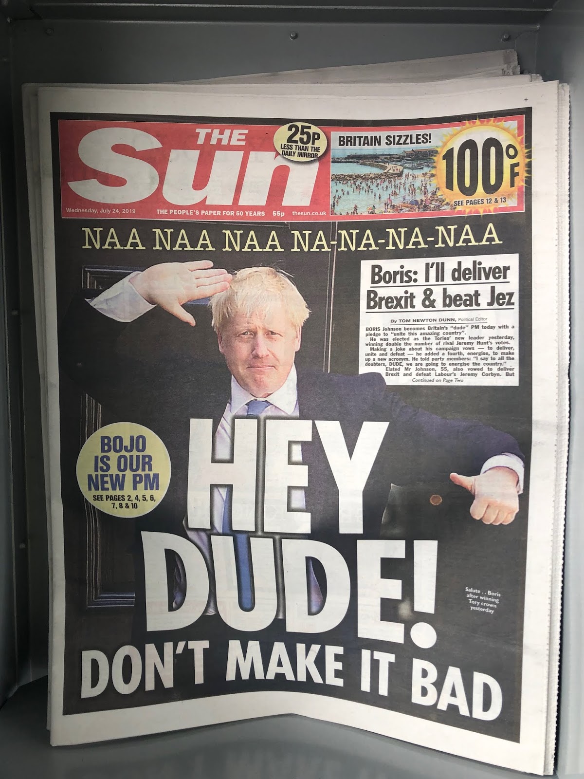 Instead, I countered. "What do you think of Boris Johnson?" Though England's newest P.M. is certainly in the headlines today, I haven't heard any discussion of him whatsoever.